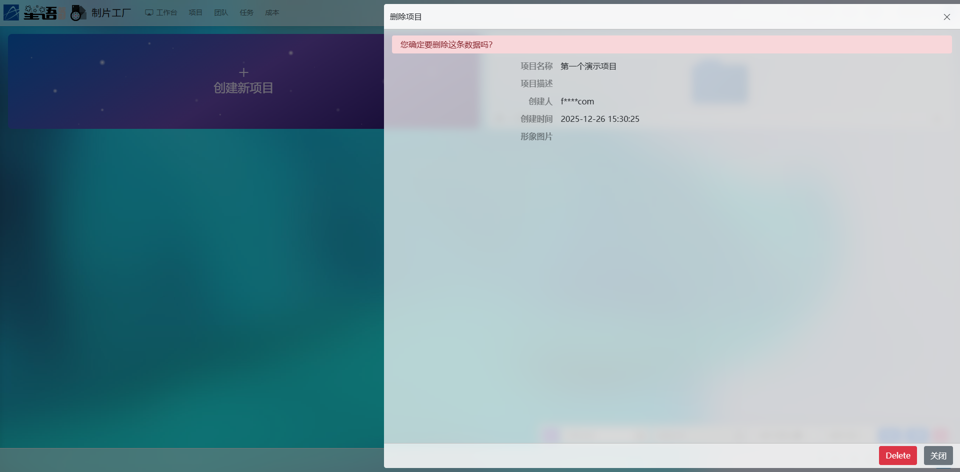 若点击删除按钮后未成功执行,并提示“具有关联数据,禁止删除”,表明该项目已存在关联数据记录。对于尚未进行任何操作的项目,其关联数据通常为系统在创建时自动生成的“制片人”职务,以及将创建者添加为制片人的团队记录。用户需进入项目首页,通过左侧菜单中的“团队成员”或“核心职务”功能,找到对应记录并将其删除。完成上述操作后,即可重新执行项目删除流程。